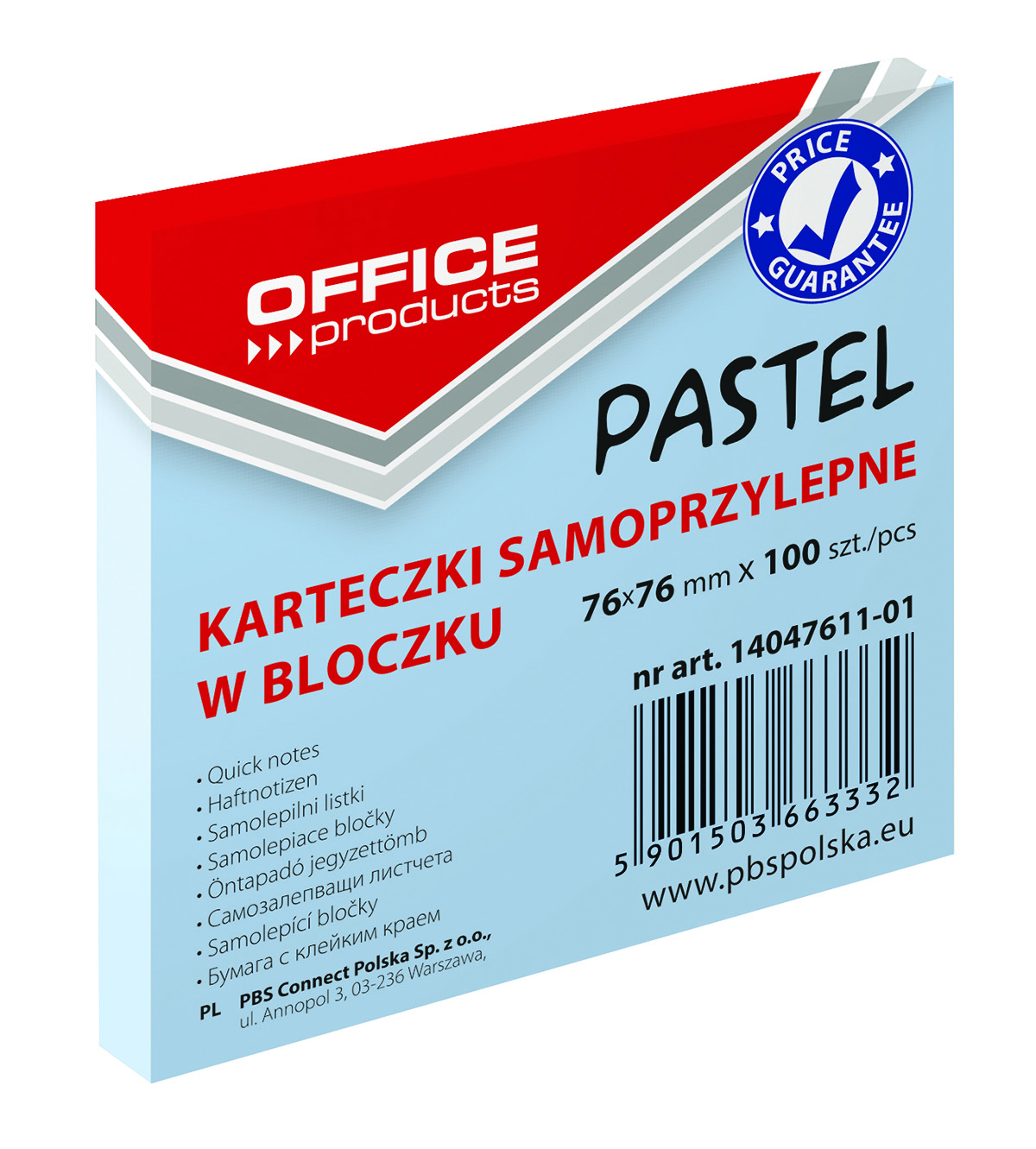 Blok samoljepljivi 76x76mm 100 listova Office products pastel plavi