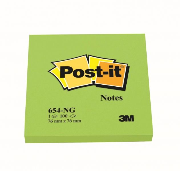 Lističi samolepilni 76x76mm 100 listov Post-it 3M 654NG neon zeleni