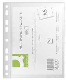 format A5, dimenzije 171x215mm polipropilen 50 mikronov, prozoren odprtina na zgornji strani univerzalna perforacija z 9 luknjami pakiranje 1/20