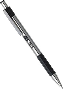 barva odtisa modra, širina odtisa 0,24 mm, širina konice 0,7 mm barva ohišja srebrno črna pisalo iz kombinacije kovine in plastike ergonomski oprijem, potisni mehanizem pakiranje 1/12 kos