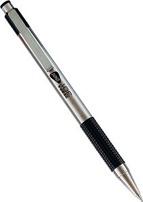 barva tiska črna, širina tiska 0,38 mm, širina konice 0,7 mm barva ohišja srebrno črna pero iz kombinacije kovine in plastike ergonomski oprijem, potisni mehanizem pakiranje 1/12 kos