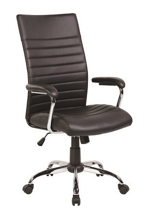 pisarniški stol z mehanizmom tipa TILT, material eko usnje funkcija proste zibanja in zaklepanje delovnega položaja nastavljiva višina sedeža 48 58 cm udobno in ergonomsko naslonjalo z vgrajenim vzglavnikom globina sedišča 50 cm, širina sedišča 50 cm, višina naslona 49,5 cm sijoče kromirano kovinsko podnožje