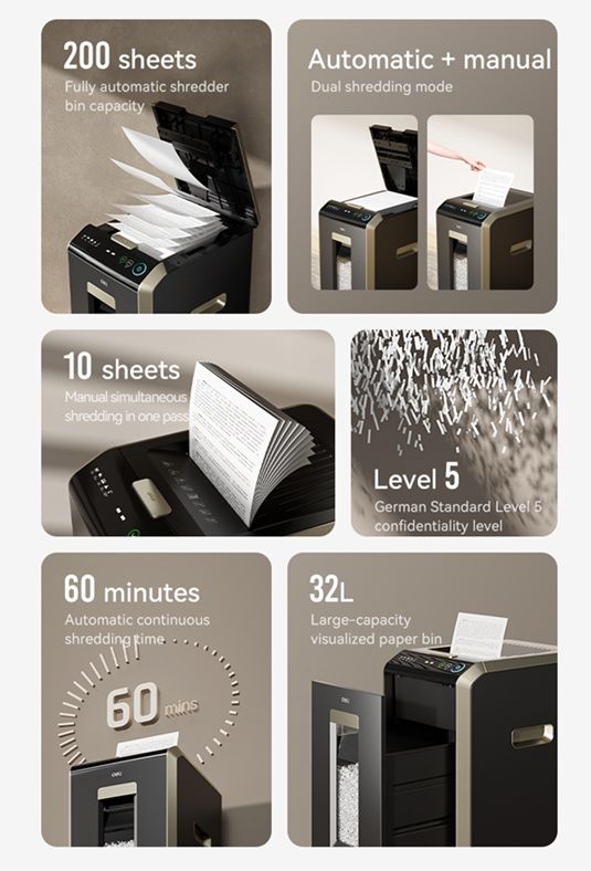 Uničevalec papirja Deli ET088 AutoMax 10 listov (ročno) 200 listov (avtomatsko)