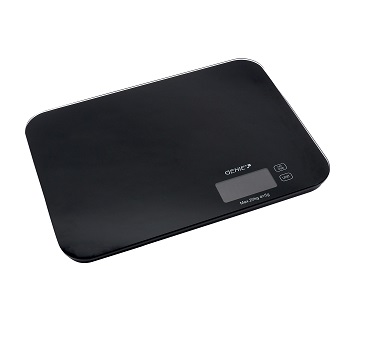 digitalna tehtnica do 20000 g kaljena steklena plošča, premer delovne površine 300x220 mm merske enote g, oz, ml, upravljanje z 2 gumboma ON / OFF / TARE in UNIT, prikaz nivoja v gramih v korakih po 5 g preko LCD zaslona z dodatna funkcija (TARA) samodejni izklop po ca. 1 minuta delovanje na baterije (2 x 1,5V R03 AAA)